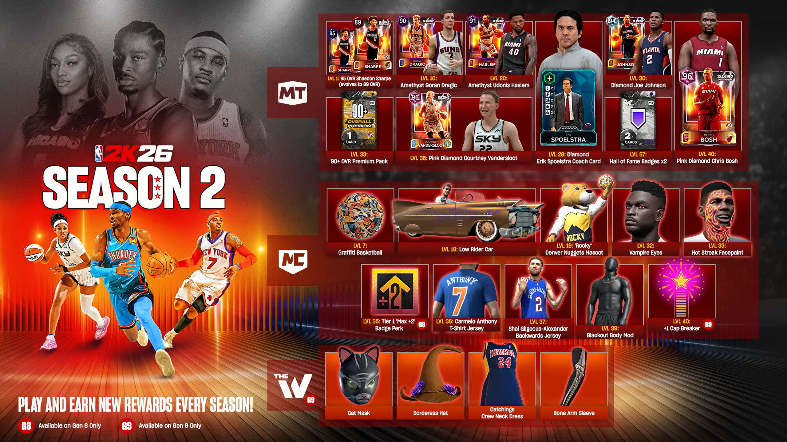 From new cars and mascots to Diamond coaches and Game Changer cards, Season 2 of NBA 2K26 is loaded with content and limited-time events to keep players leveling up all season long.