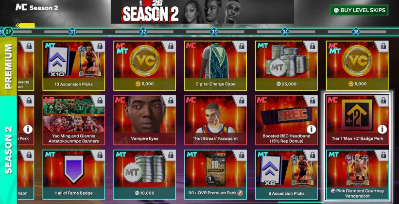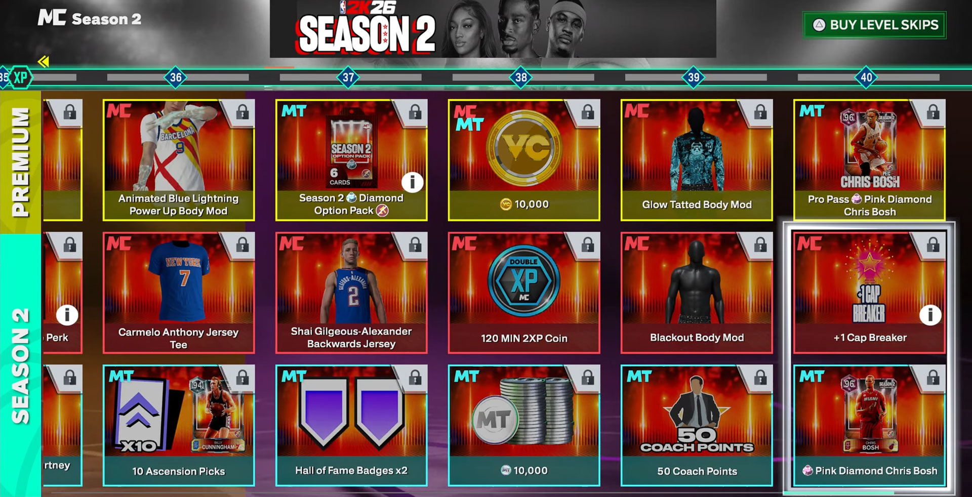 NBA 2K26 Season 2 is officially here, bringing a brand-new set of Season Rewards across MyCAREER, MyTEAM, and The City. Players can grind from Level 1 to Level 40 to unlock exclusive prizes, including outfits, boosts, and rare cards. The Level 40 MyCAREER reward is a +1 Cap Breaker, while the Level 40 MyTEAM reward features a Pink Diamond Chris Bosh (Miami Heat).