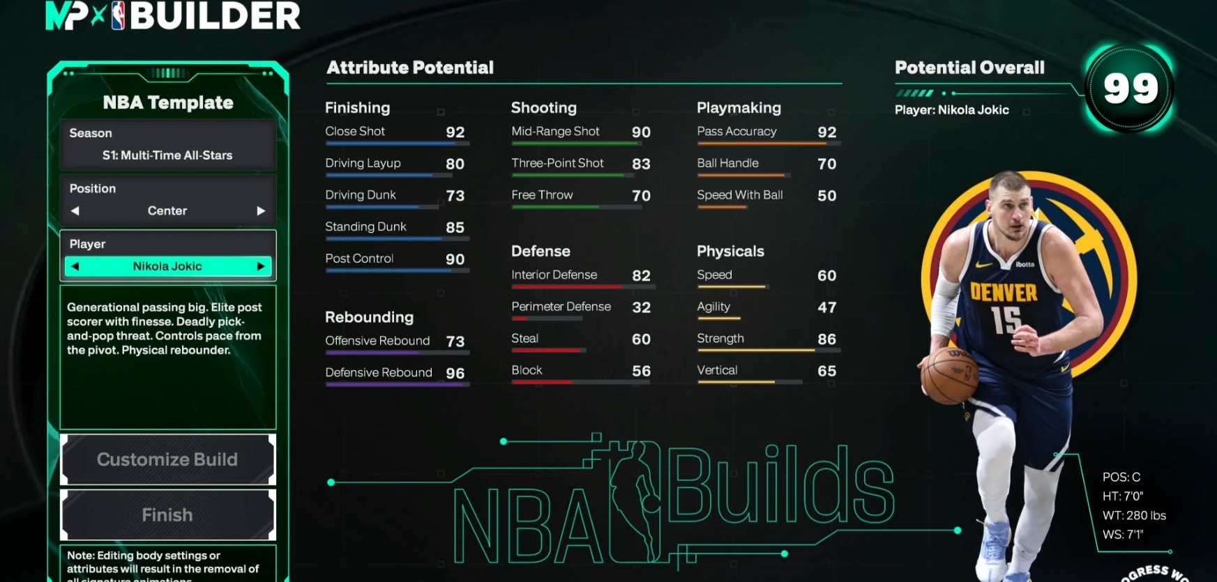 Generational passing big. Elite post scorer with finesse. Deadly pick-and-pop threat. Controls pace from the pivot. Physical rebounder.