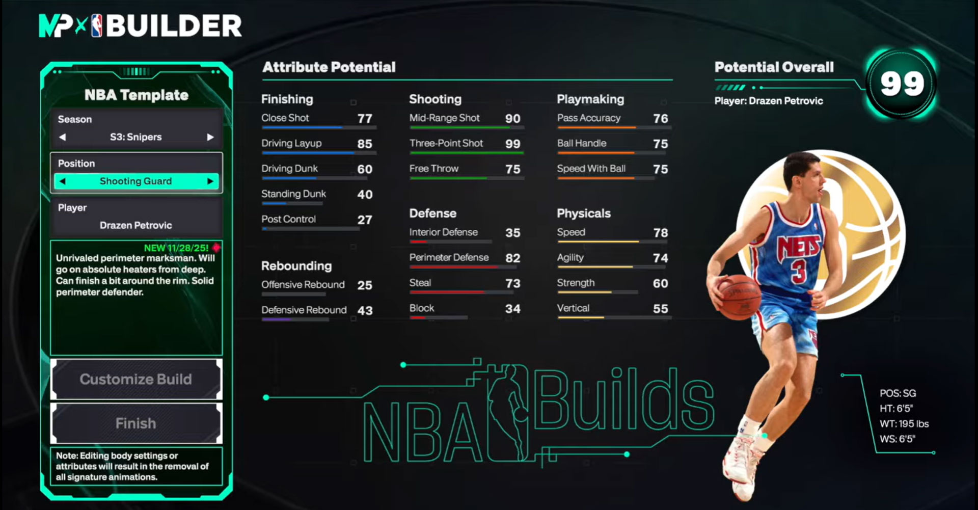 The popular NBA 2K26 Template Builds are back and more detailed than ever in the new MyPLAYER Builder! These templates are authentic replicas of real NBA players, allowing you to create a MyPLAYER with their exact height, weight, signature moves, jump shot, and more. To help you create the best build, this comprehensive guide will track how to create all NBA 2K26 Template Builds throughout every Season of the game’s full cycle and will be fully updated when Templates are made available. Use this resource to build a replication of your favorite NBA star and take their unique attributes and animations to the virtual court.