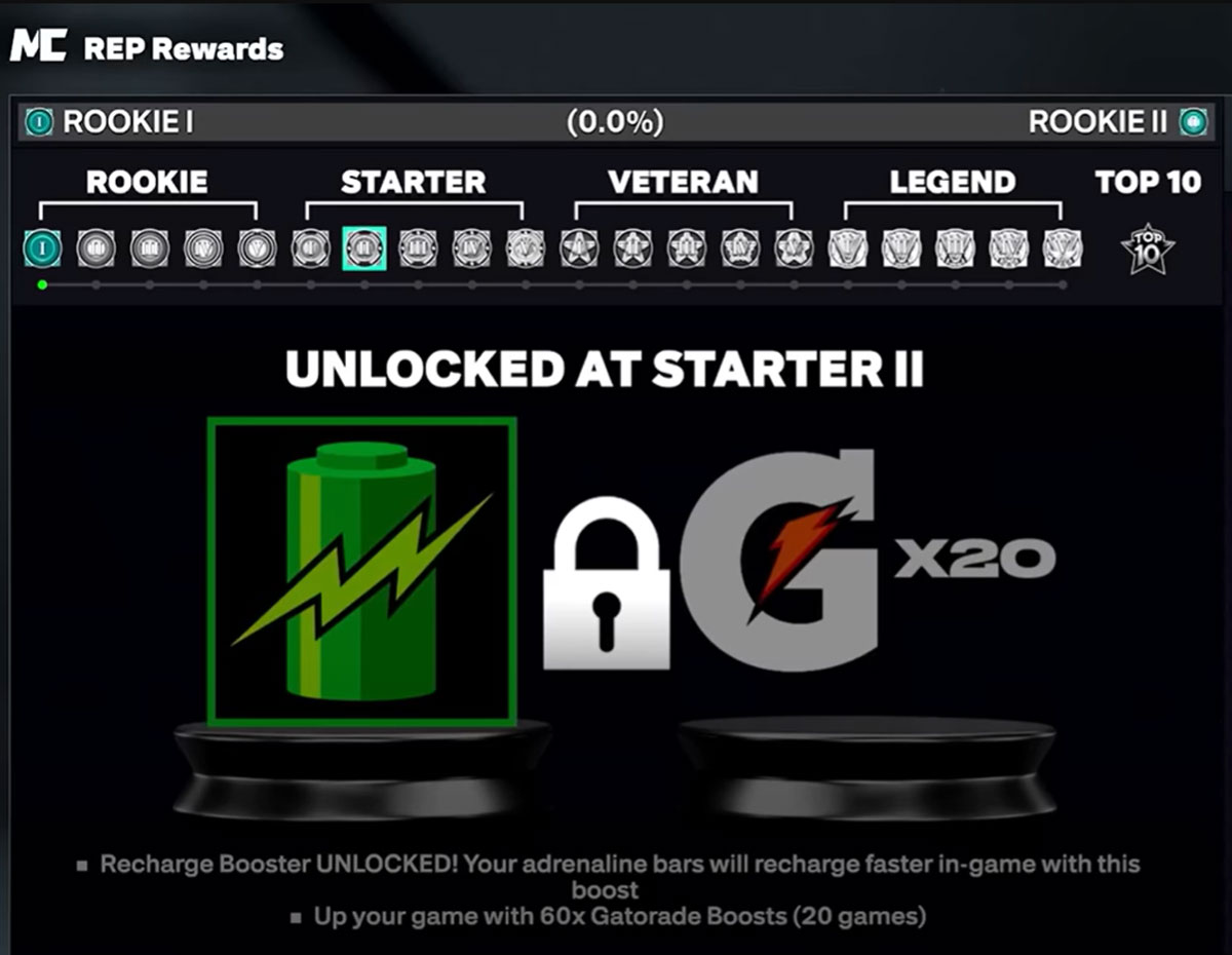 - Recharge Booster UNLOCKED! Your adrenaline bars will recharge faster in-game with this boost