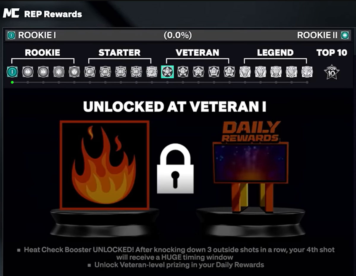 - Heat Check Booster UNLOCKED! After knocking down 3 outside shots in a row, your 4th shot will receive a HUGE timing window