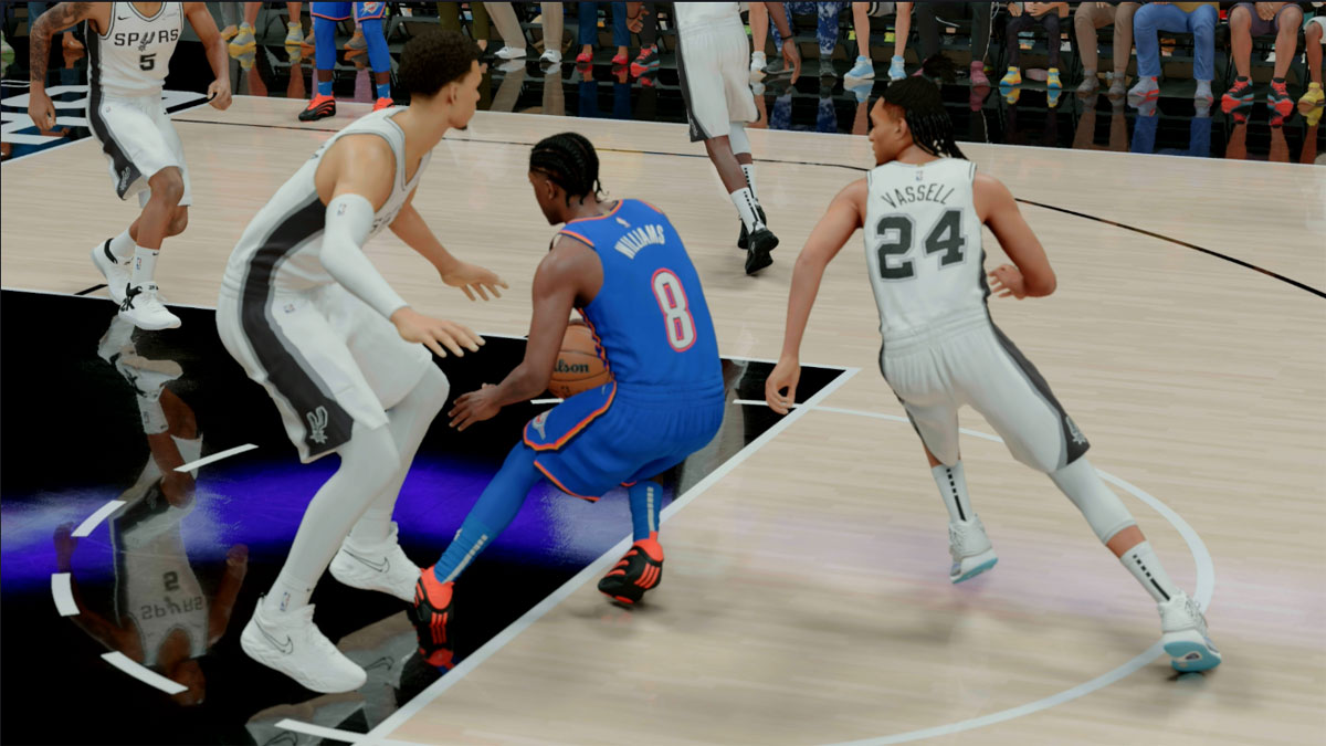 Floor spacing is essential. Think of the Golden State Warriors’ dynasty – shooters spread all over the court, creating driving lanes and open looks. Your position and build matter, so make sure your player has enough shooting to keep defenders honest. Giving teammates room to operate – whether for drives, kicks, or paint opportunities – is just as important as scoring yourself. Even if your build isn’t a sharpshooter, you can still contribute by running various actions and making smart reads to keep the offense flowing.