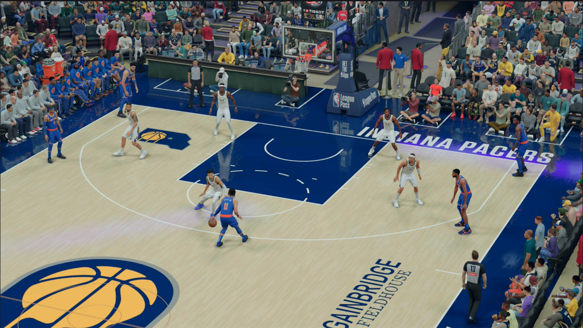 Camera angle affects court vision. The default “2K Cam” provides the best perspective for 5-on-5 games, improving passing lanes, spacing, and defensive rotations. Adjust camera in Park, Rec, or Pro-Am with the D-pad.