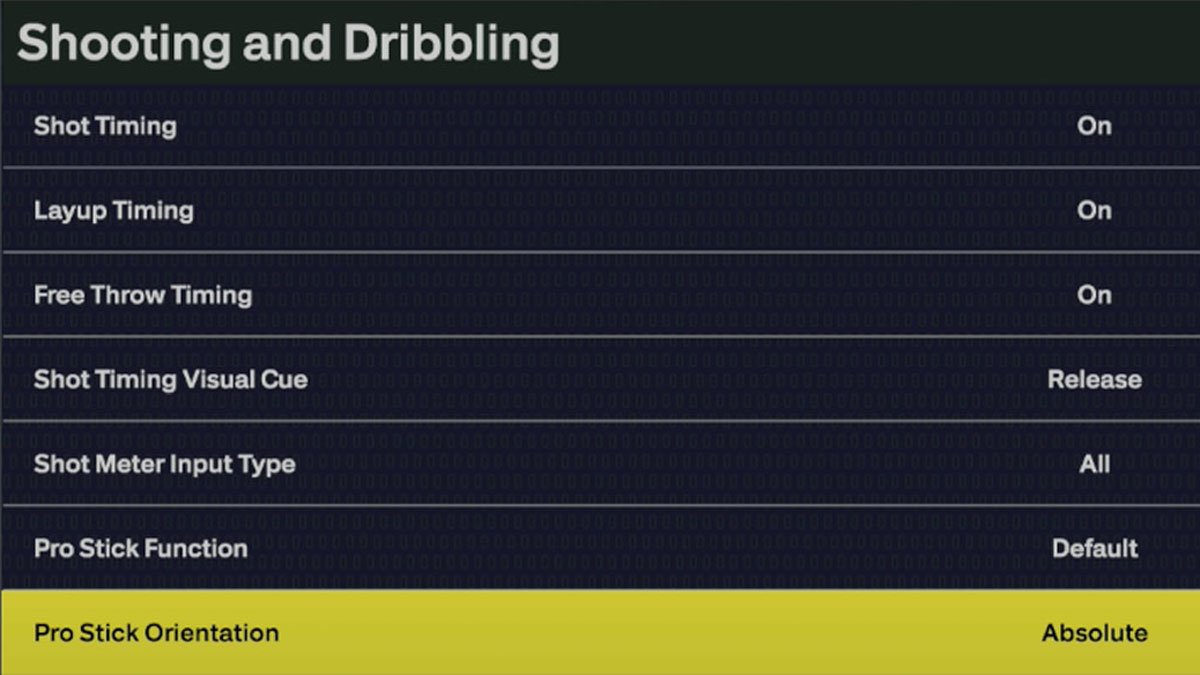 - Recommendation: Set to ‘Default’ for the flexibility to use RS for both dribble moves and shots