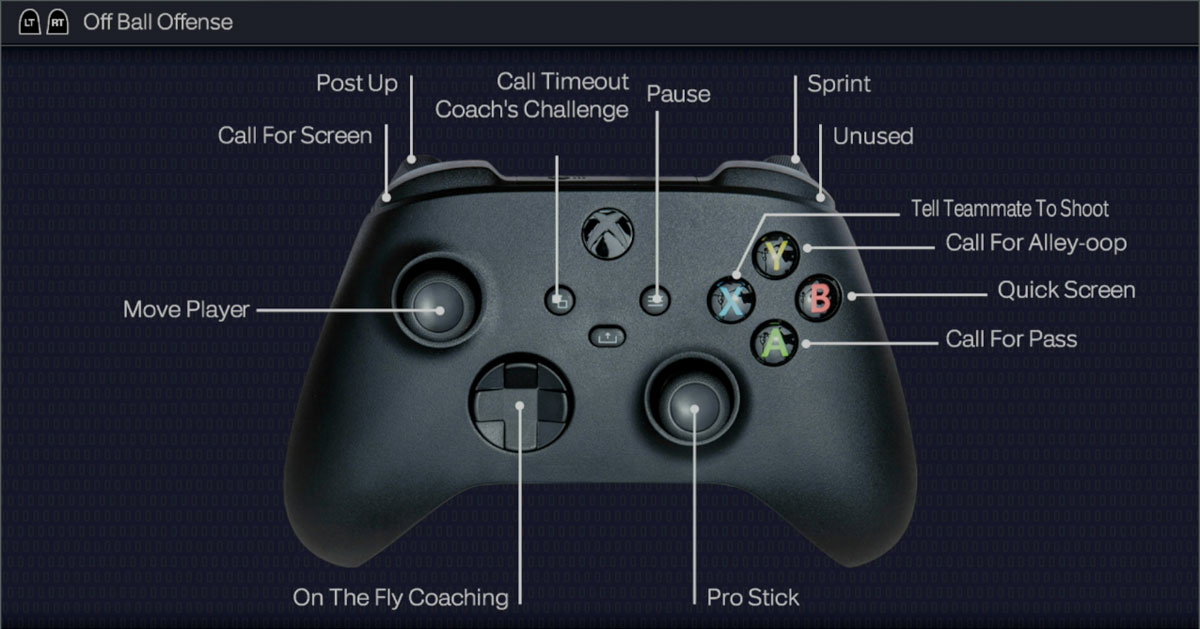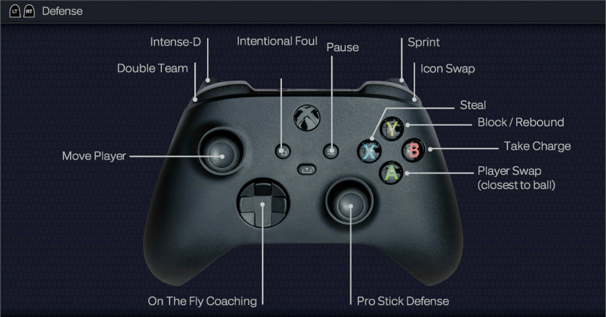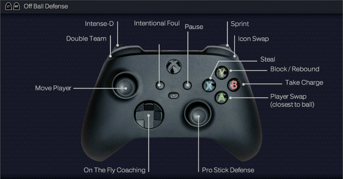 | Post Push | Hold L2 to engage in the post. Move LS toward the offensive player | Hold LT to engage in the post. Move LS toward the offensive player |