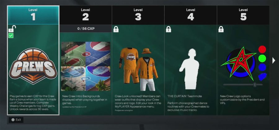 | Level 3 | Crew Look unlocked! Members can wear outfits that display your Crew colors and logo. Edit your look in the MyPLAYER Appearance menu. |