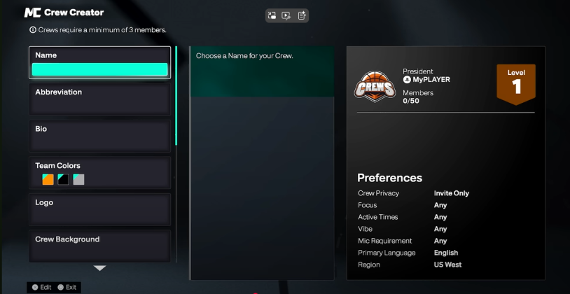 - First, create your Crew from the MyCAREER menu