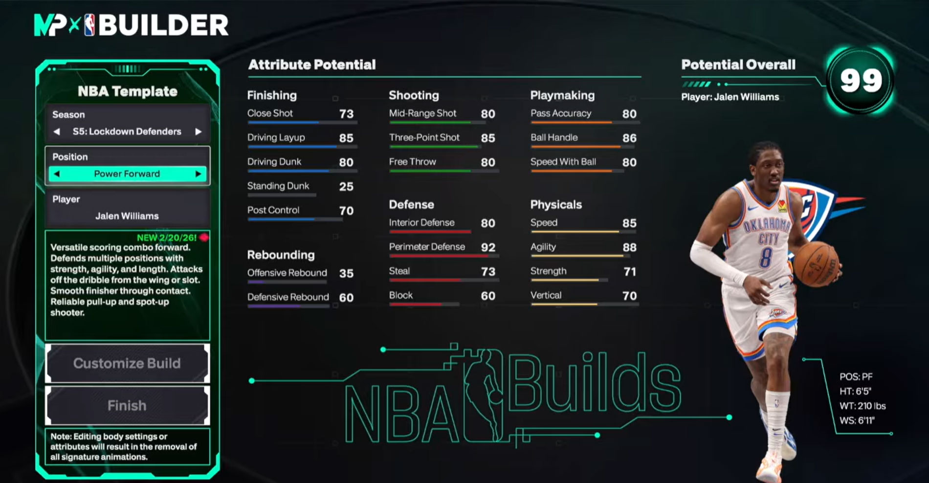 Here is the NBA 2K26 official Jalen Williams template build and how to create it in NBA 2K26!
