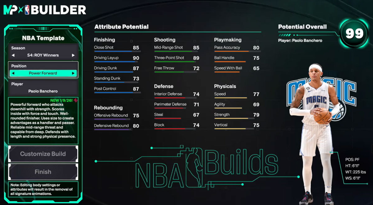 Here is the NBA 2K26 official Paolo Banchero template build and how to create it in NBA 2K26!