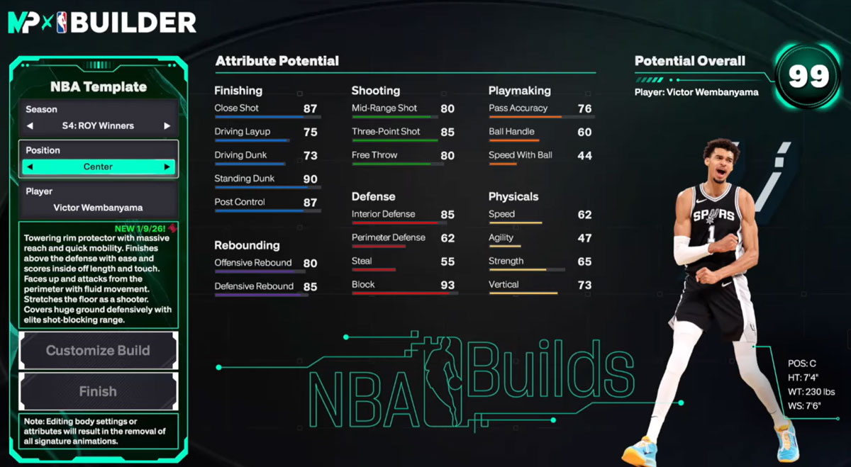 Here is the NBA 2K26 official Victor Wembanyama template build and how to create it in NBA 2K26!