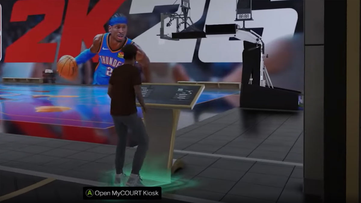 - In your MyCOURT, go to the kiosk with the green glow beneath it and press A (Xbox) or X (PlayStation) to open the Social screen.
