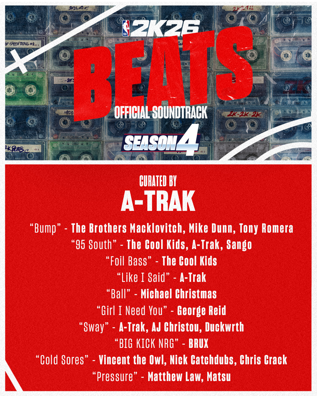 NBA 2K26 Season 4 cranks up the energy with a bold new Beats soundtrack that blends hip-hop, house, and club-ready anthems. Headlined by standout tracks from Disclosure & Anderson .Paak, Glorilla, Joyner Lucas, and P-Lo, the 2K BEATS lineup delivers nonstop momentum for every mode. Curated with A-Trak’s signature touch, the playlist mixes underground heat with global vibes, making Season 4 one of the most rhythm-driven soundtracks yet.